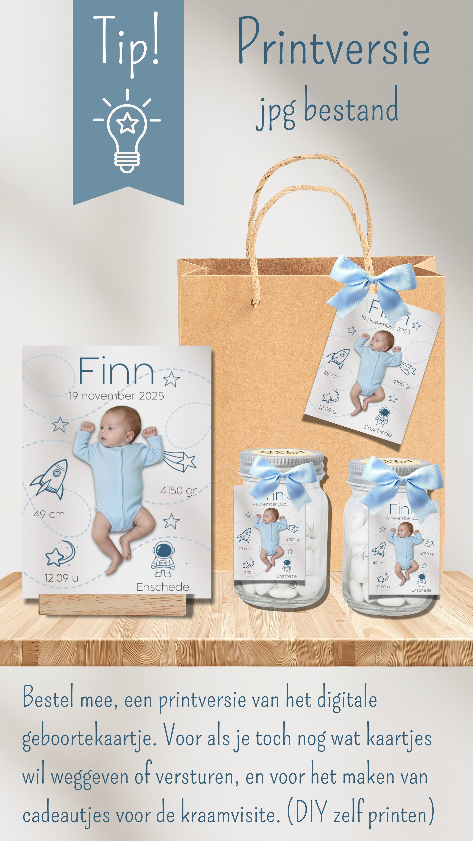 Bestel dit product samen met het digitale geboortekaartje.