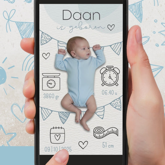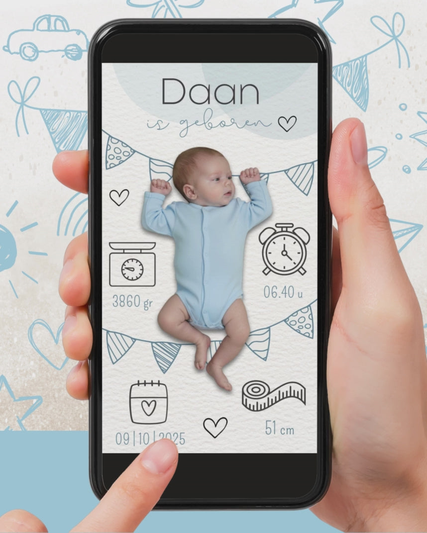 Kies voor een digitaal geboortekaartje of beter gezegd een digitaal geboorteverhaaltje. Het is een heel leuk alternatief voor een standaard geboortekaartje. Het is voordelig en duurzaam. Een perfecte manier om je familie en vrienden op een unieke manier op de hoogte te brengen dat jullie kleintje is geboren!