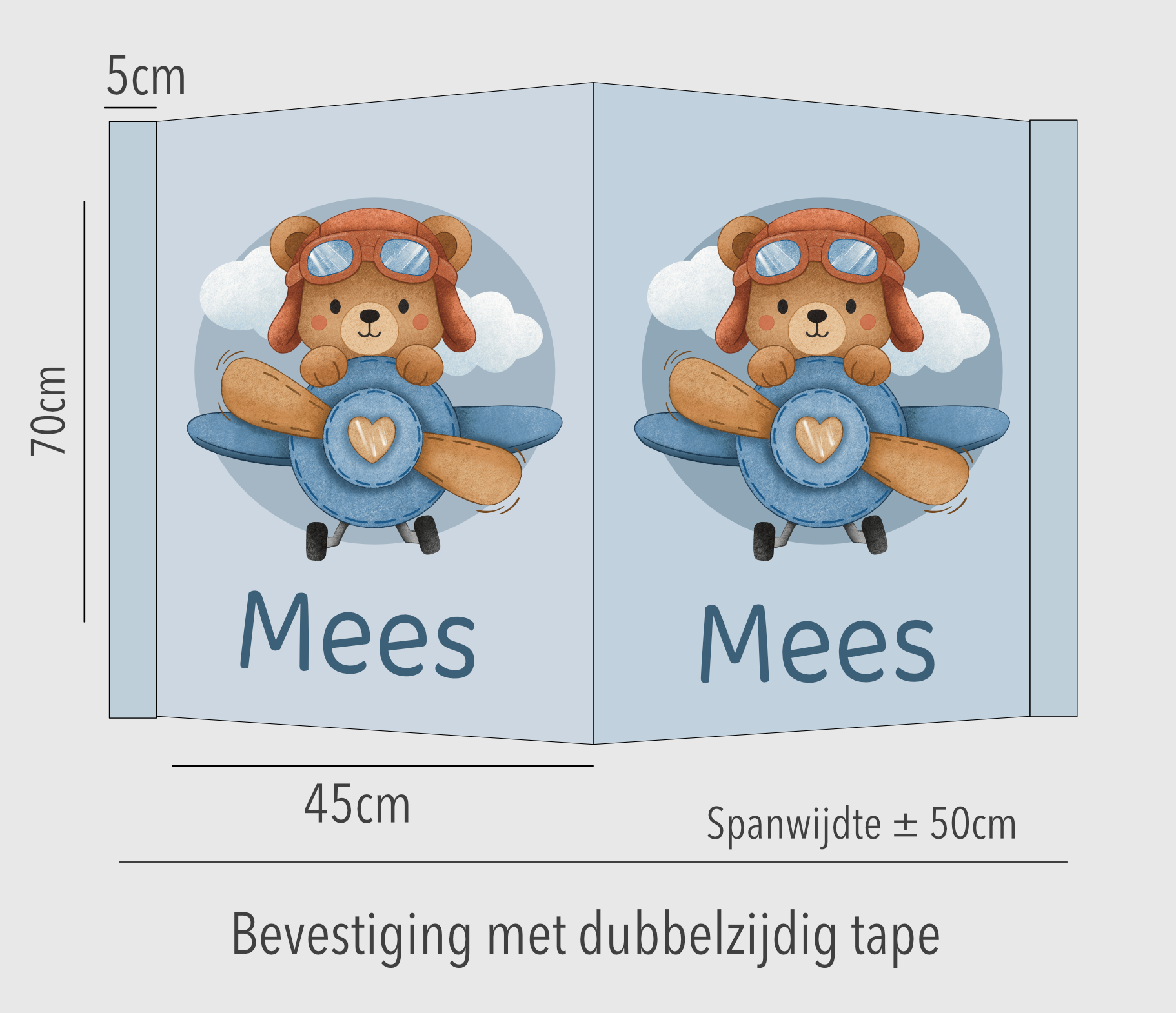 Het formaat van de geboortebord is, 100cm x 70cm, de spanwijdte is ±80cm