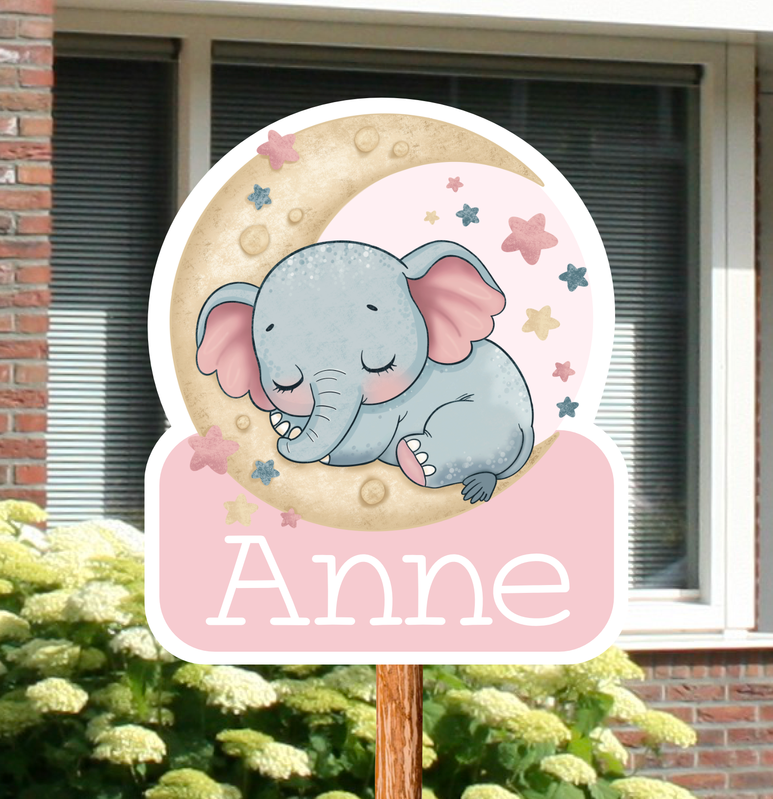Geboortebord tuin | Olifantje roze